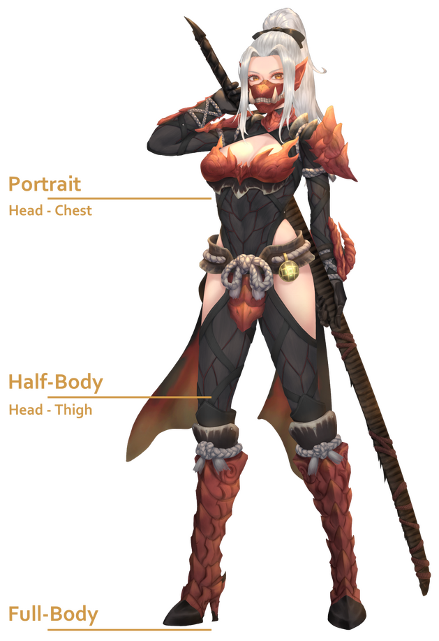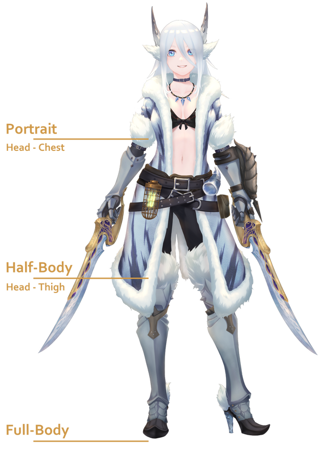 (Ex. Full-Body + Full Render / Half-Body + Clean Sketch)